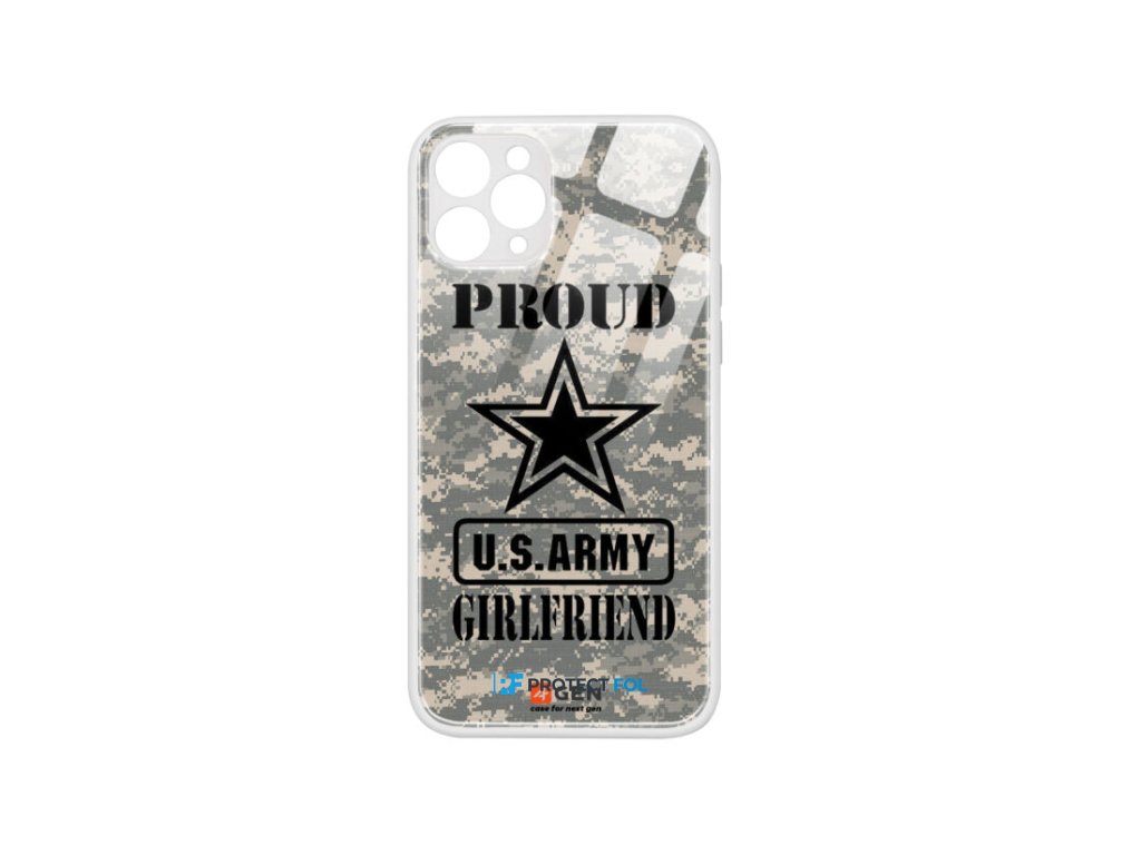 Apple iPhone 11 Pro (5.8), egyedi 4Gen fehér üvegtok, US Army Wood