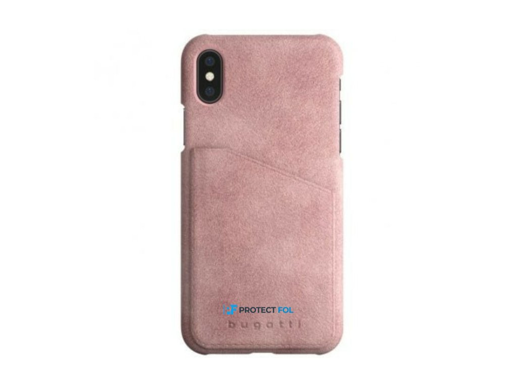 Bugatti Londra kemény alcantra bőr hátlaptok iPhone X, XS, (5.8) típusú készülékhez, világos pink