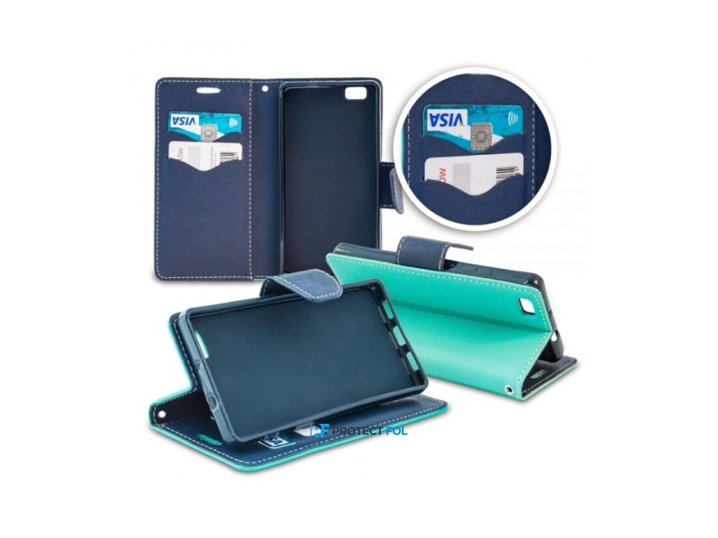 Xiaomi Redmi 8A, Fancy oldalra nyíló flip tok (ujjlenyomat nyílással), menta - sötét kék